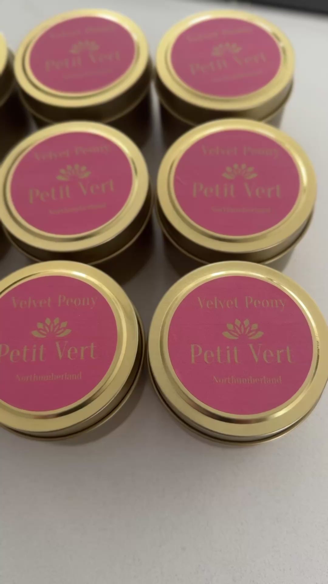 Petit Vert Velvet Peony Small Gold Tin Candle